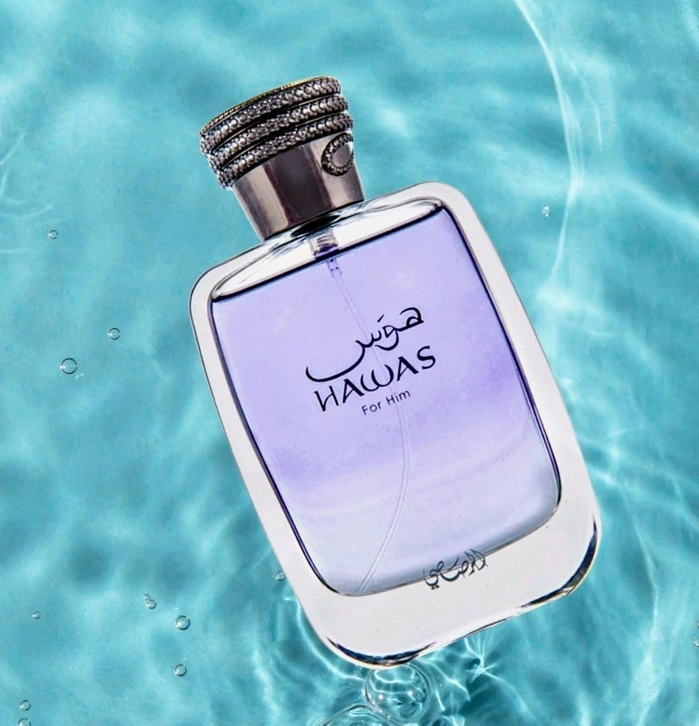 Hawas for Him blends cinnamon, bergamot, orange blossom, grey amber and sandalwood to create an aquatic scent designed to embody masculine strength and vigour. This fresh elegant woody perfume combines the premium Italian citrus and the fruity freshness of pear and pineapple.